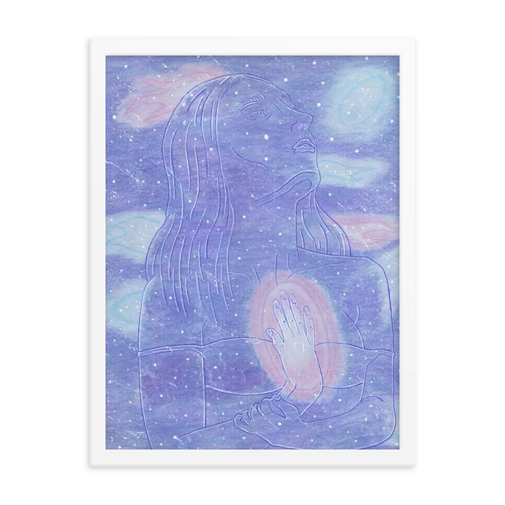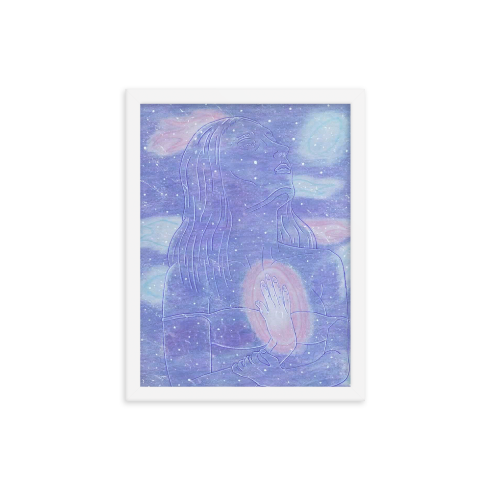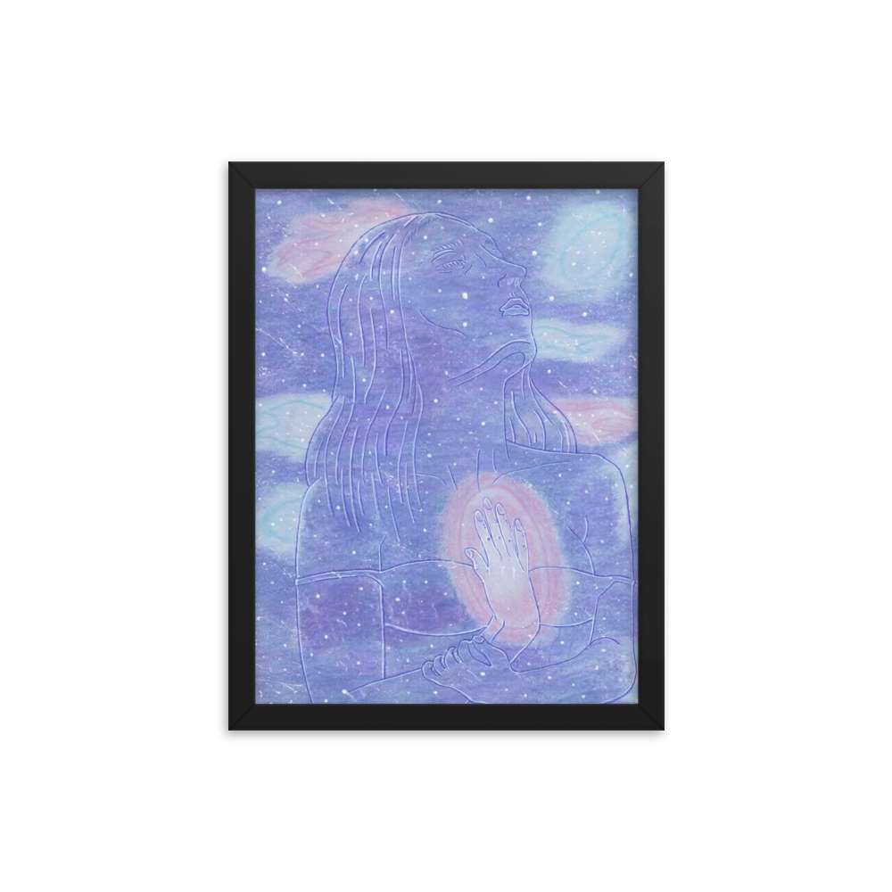 In this piece there is a goddess in space embodying herself as one with her own inner star system.
