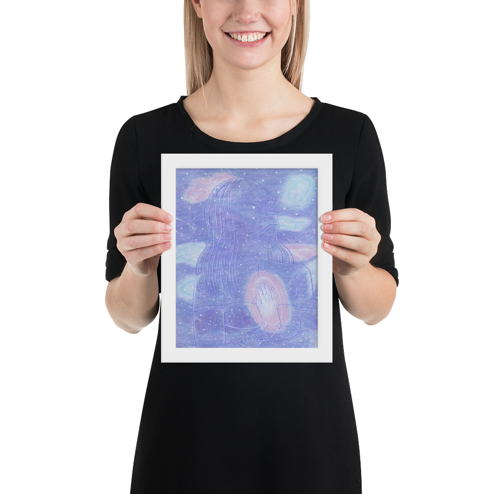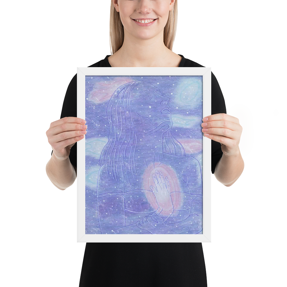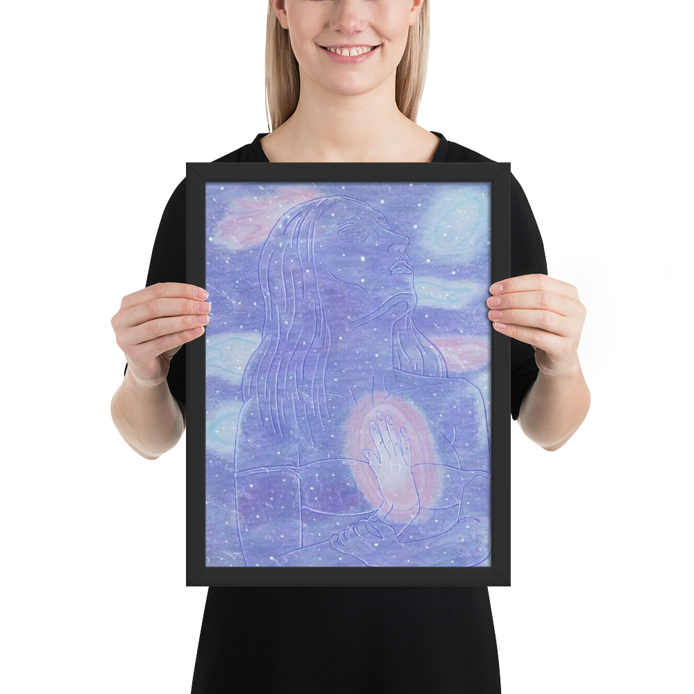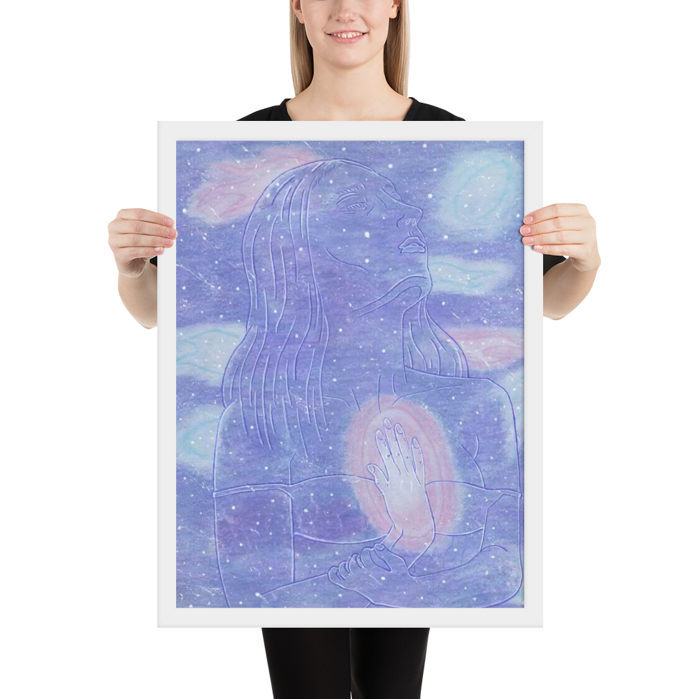 In this piece there is a goddess in space embodying herself as one with her own inner star system.